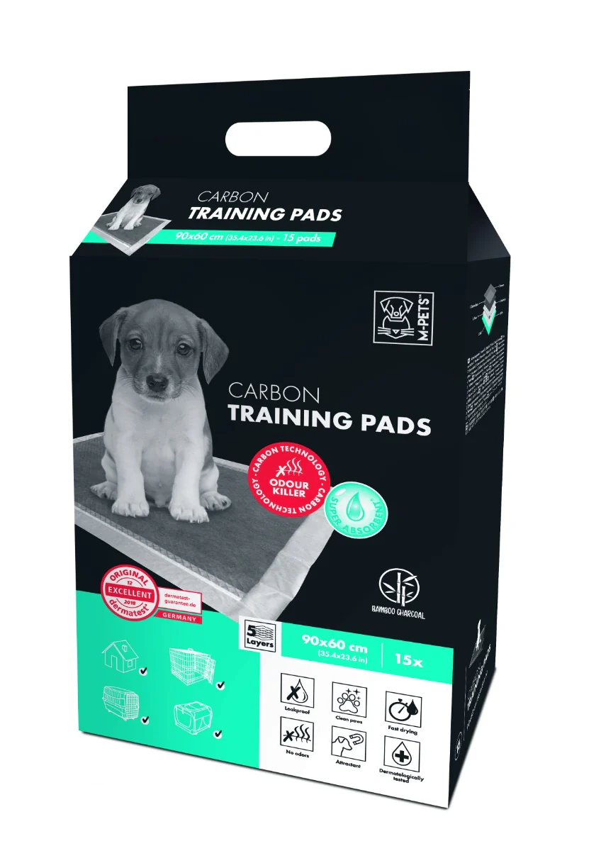 M-Pets Carbon Training Pads 90 X 60cm offer a large absorbent area and enhanced odor control thanks to their carbon-activated core. Designed for puppies, elderly dogs, or dogs in recovery, these pads keep spaces fresh and dry.